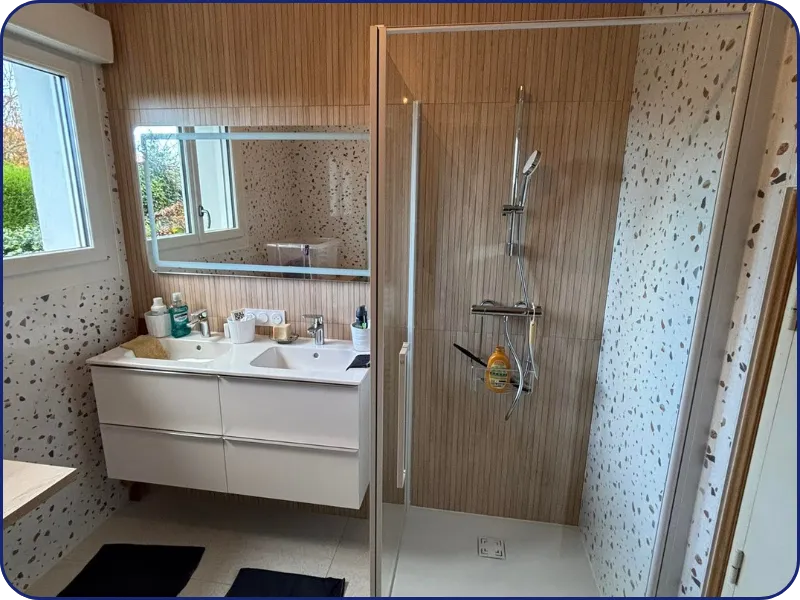 Nous nous occupons de la pose sur mesure pour chaque espace, en veillant à respecter les contraintes d’humidité et à optimiser l’agencement pour un résultat à la fois fonctionnel et esthétique.